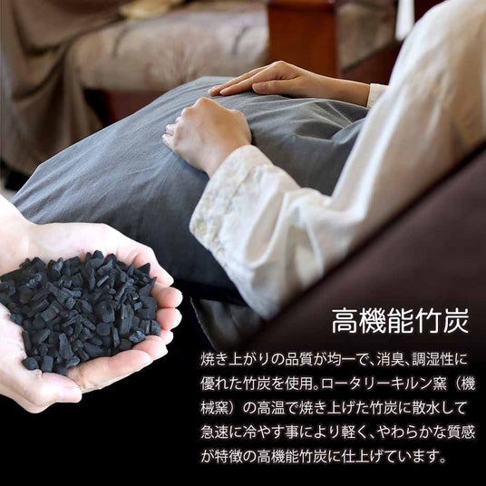 さらに中身が充実したことで、クッションの形が崩れにくく、長く安定した使用感が持続。竹炭が持つ消臭・調湿作用も強化され、より心地よい室内環境づくりに貢献します。湿気がこもりやすい季節でも、空間を快適に保ちます。
