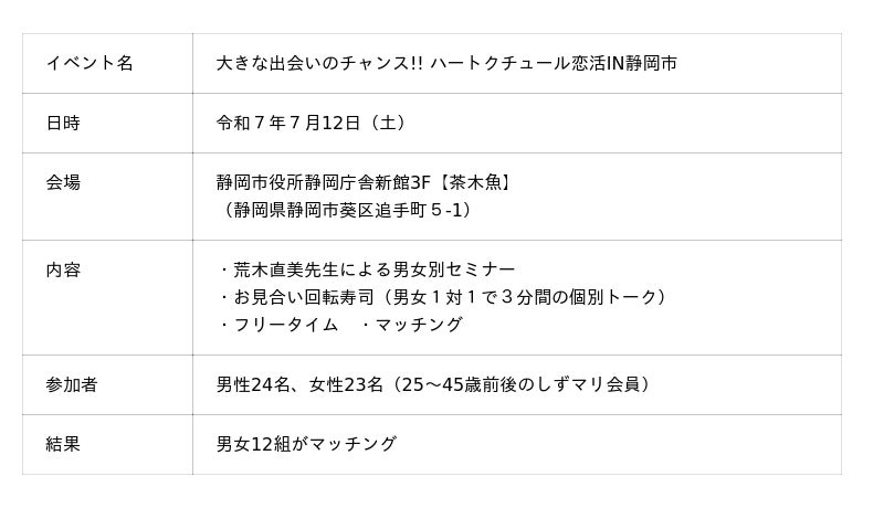 ・しずおかマリッジ主催の大型マッチングイベントを静岡市で今年度初開催!!