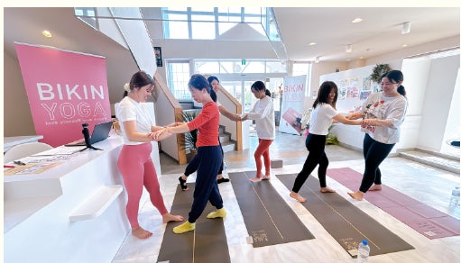 身体をやさしく動かして整える「美筋ヨガ(C)」のレッスンと、日常生活の中でも実践できる「疲れない歩き方」のワークショップを組み合わせた特別プログラム。