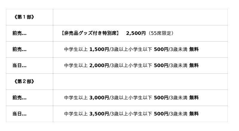 ■そ の 他:公演中止の場合以外、チケットの払い戻しは致しません。