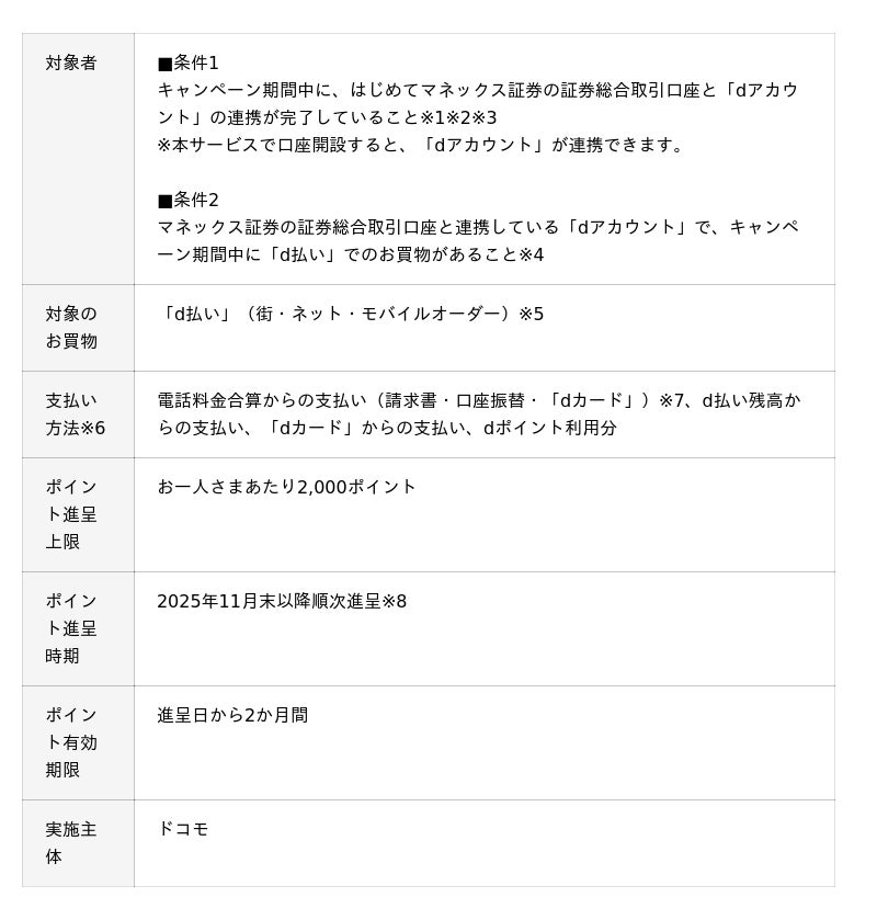 ※1 キャンペーン期間中に、マネックス証券の証券総合取引口座とはじめて「dアカウント」を連携