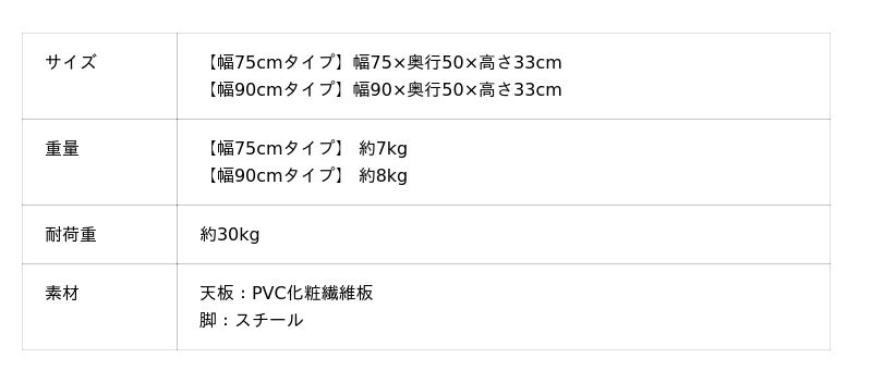 天板サイズは、幅75cmと幅90cmの2種類をご用意。とにかく省スペースにこだわりたい方には幅75cm、作業スペースも確保したい方には幅90cmと、ライフスタイルに合わせてお選びいただけます。