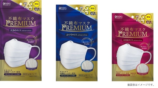 大人気の『不織布マスクPREMIUM 』より大きめ・ふつう・小さめサイズの3種類の袋パッケージが遂に新発売!