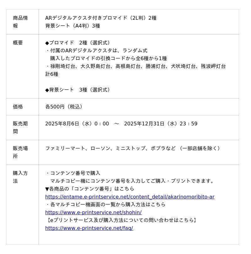 株式会社ワールドエッグス(本社:東京都港区、代表取締役社長:波房克典)は、株式会社メディアドゥ(本社:東京都千代田区、代表取締役社長:藤田 恭嗣)が運営するNFTマーケットプレイス「FanTop」にて、『燈の守り人』の「ARデジタルアクリルスタンド(以下、アクスタ)付きブロマイド」を含むプリントグッズを2025年8月6日(水)より販売します。さらに、石廊埼灯台(静岡県南伊豆町)と神威岬灯台(北海道積丹町)では、期間限定でARデジタルアクスタを無料配布いたします。