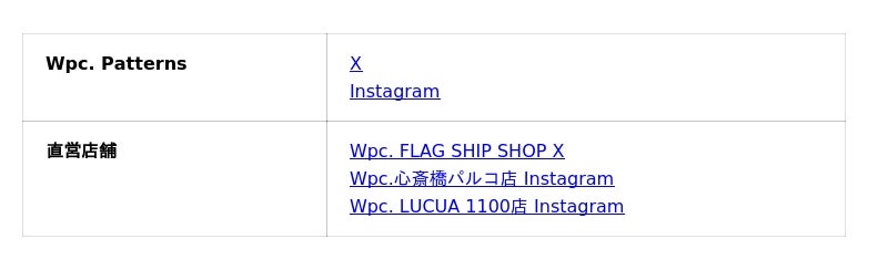 展開ブランド :Wpc. / W by Wpc. / Wpc. IZA / SiNCA by Wpc. / ONDOO by Wpc.