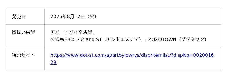<公式WEBストア and ST(アンドエスティ)> https://www.dot-st.com/apartbylowrys/ <Instagram>https://www.instagram.com/apartbylowrys/