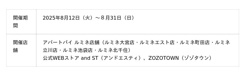■札幌アピア、ルクア大阪、and ST(アンドエスティ)、ZOZOTOWN(ゾゾタウン)限定アイテム