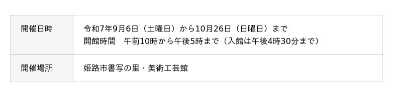 姫路市書写の里・美術工芸館では、令和7年9月6日(土曜日)から10月26日(日曜日)まで特別展「兵庫工芸展姫路展」を開催します。
