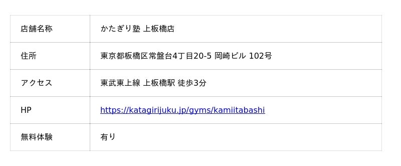 ▶︎https://katagirijuku.jp/gyms/kamiitabashi