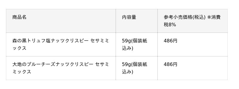 - 当社人気のフレーバーナッツ『森の黒トリュフ塩ナッツミックス』、『大地のブルーチーズナッツミックス』の新商品