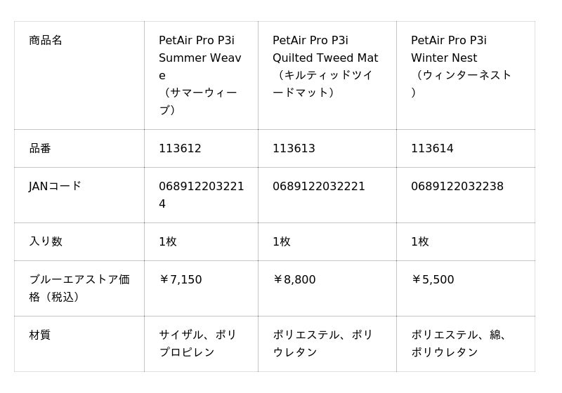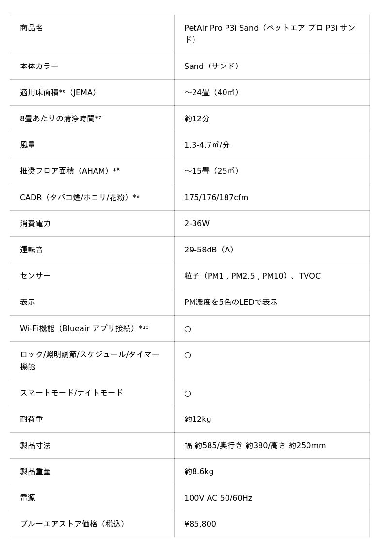 *³ PetAir Pro P3iナイトモードの場合、29dB(A)。