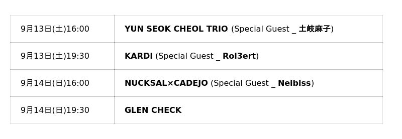 出演者には、韓国の音楽シーンを牽引するYUN SEOK CHEOL TRIO(ユン・ソクチョル・トリオ)、KARDI(カーディ)、NUCKSAL(ノクサル)×CADEJO(カデホ)、GLEN CHECK(グレンチェック)の4組を迎え、全4回の公演を実施いたします。日本人アーティストとの特別共演も予定しており、国境やジャンルを越えた音楽交流の実現が期待されています。