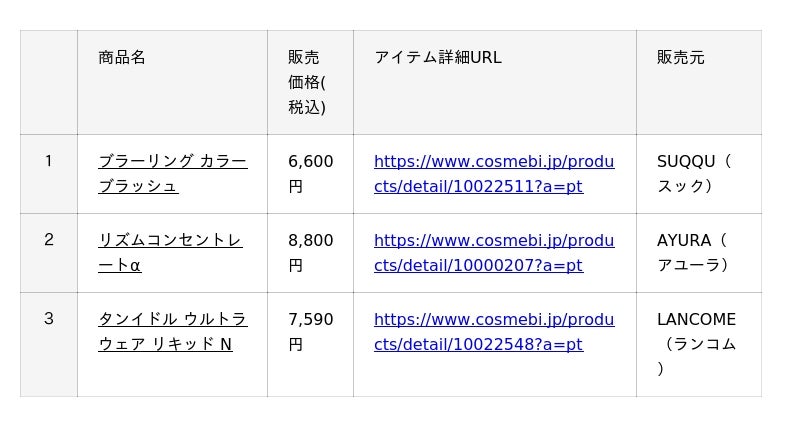 COSME biはコスメの検索や比較ができる情報サイトです。