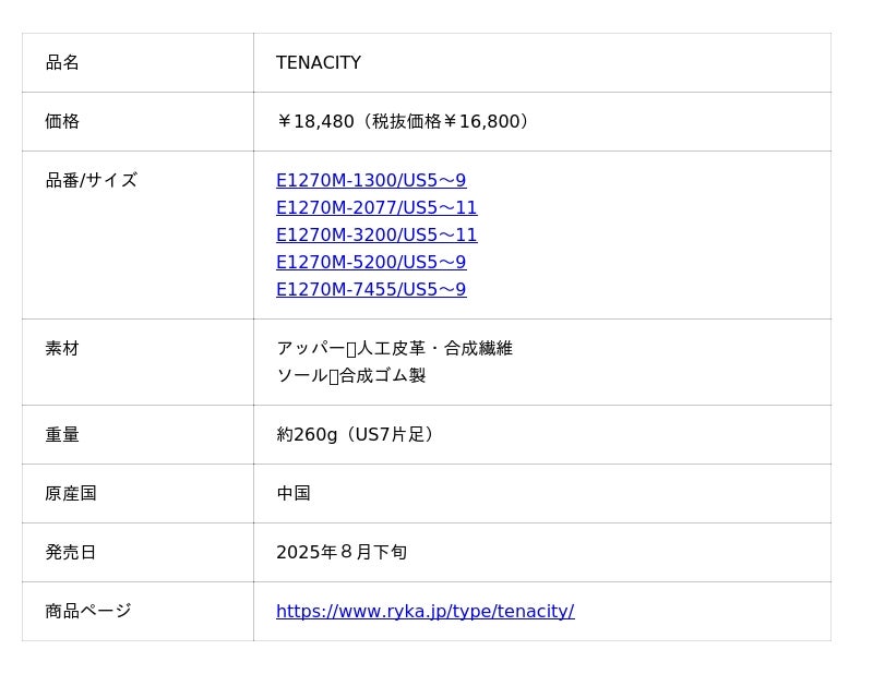 rykaシューズは、トータルデザインを意識しスタイリッシュかつ高いフィット感でアクティブな女性に最適。