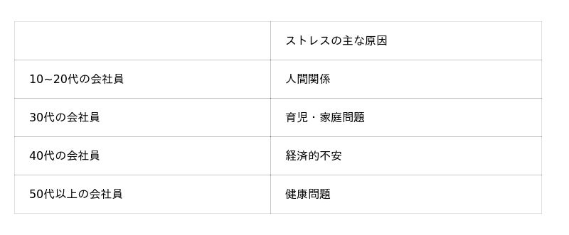 社会人の年代別のストレスに関する実態調査