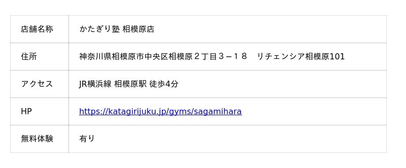 ▶︎https://katagirijuku.jp/gyms/sagamihara