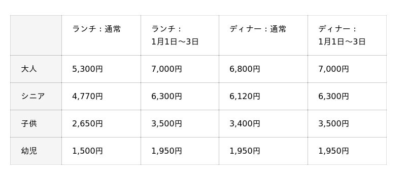 ※大人(中学生以上)/シニア(65歳以上)/子供(小学生)/幼児(3歳~小学生未満)