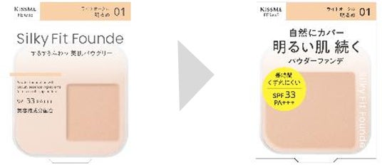 商品特長である自然なカバー力、くずれにくさ、SPF表記がわかりやすいデザインにリニューアル。
