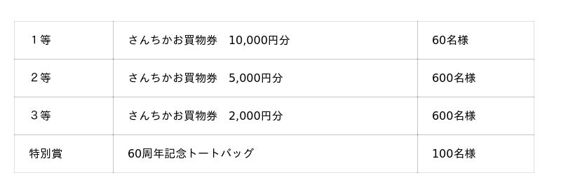 さんちかお買物券や60周年記念グッズなどが当たります。