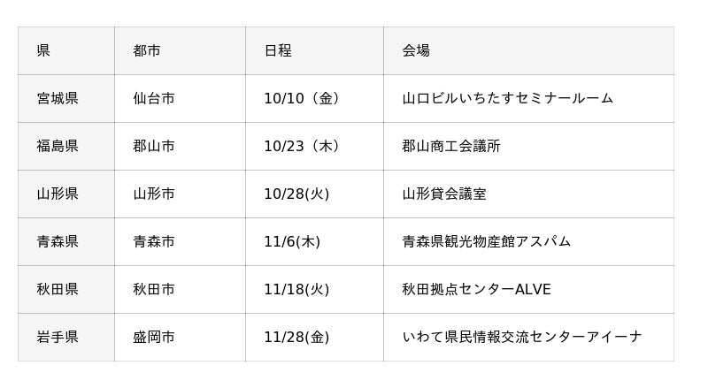 「個別に直接質問したい」「より実践的に知識を深めたい」といったご要望にお応えするため、この度、リアルセミナーとして東北6県での開催を決定いたしました。