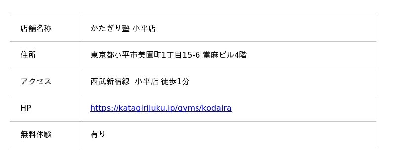 ▶︎https://katagirijuku.jp/gyms/kodaira