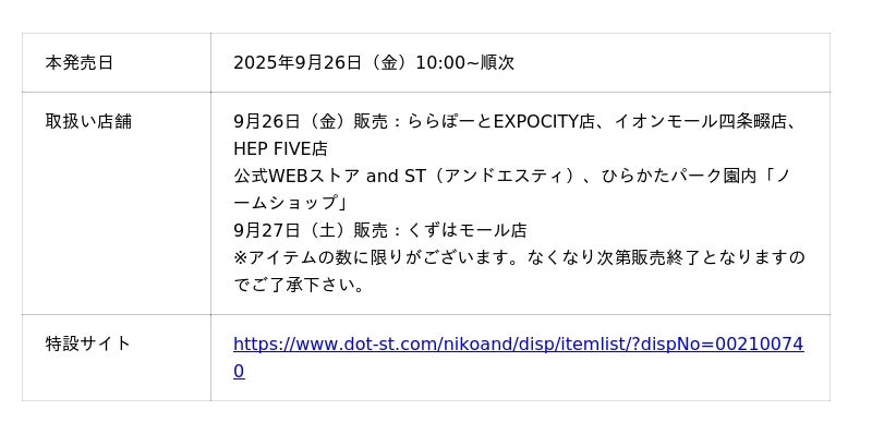 「niko and ... 」が、全国各地の企業と出会い、手を取り合う新プロジェクトが始動!第一弾は、西日本最古の遊園地「ひらかたパーク」とのコラボレーションアイテム全4型を9月26日(金)より販売
