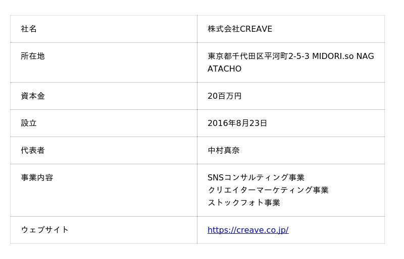 株式会社CREAVE 会社概要
