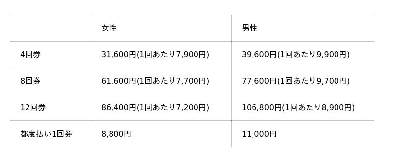 パーソナルレッスン料金