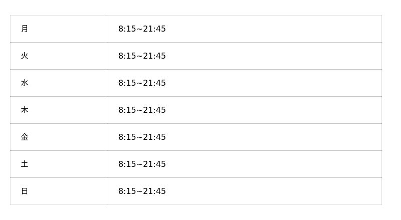 ※オープン時の営業時間となり、変更となっている可能性がございます。