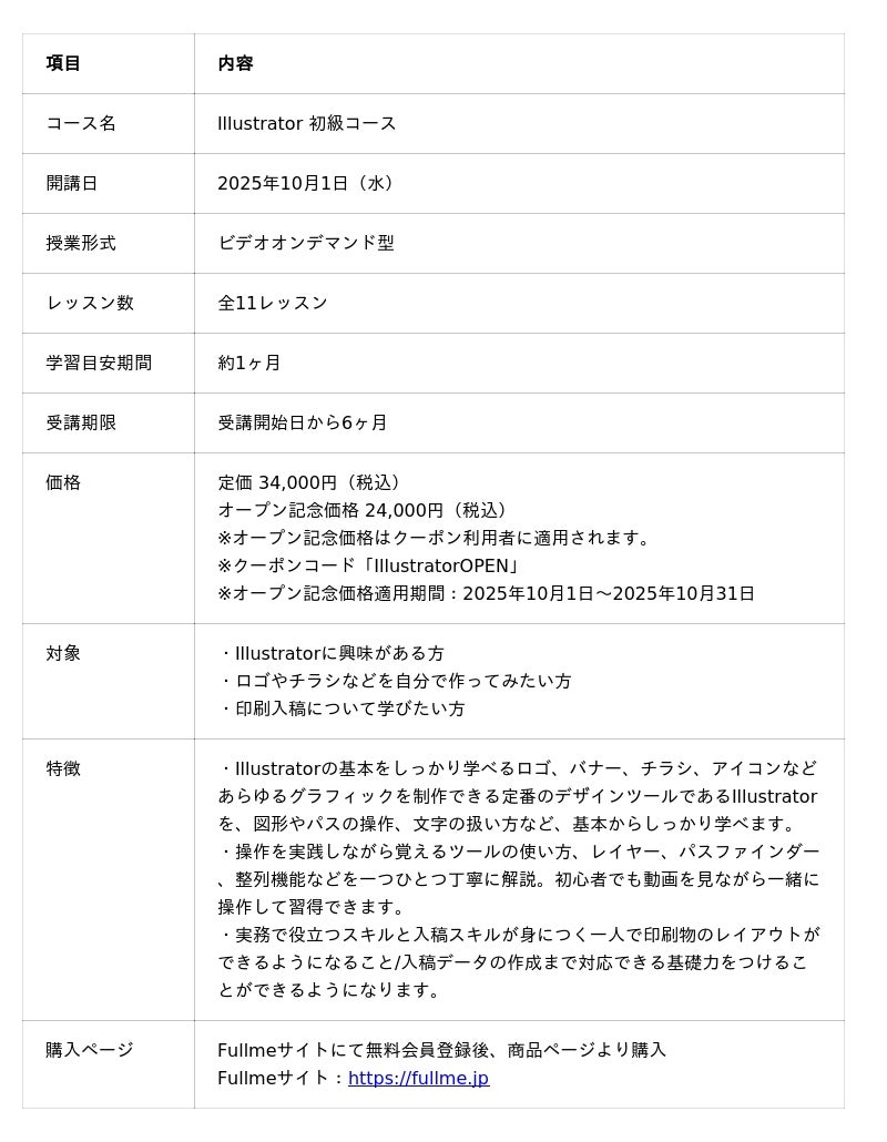 デザインスクール「Fullme」、2025年10月1日に開校2周年を迎え、2周年記念キャンペーンを開催!同日より、新講座「Illustrator 初級コース」をOPEN