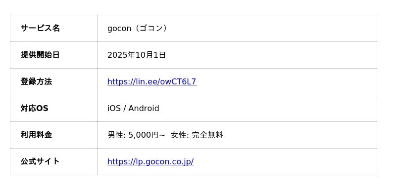 gocon(ゴコン)は、こうした課題を解決し、「今すぐ、良い人と、安心して飲みたい」というユーザーの本質的な欲求に応えるため、これまでのマッチングアプリの常識を覆す独自機能を通じて、最高のマッチング体験を提供します。
