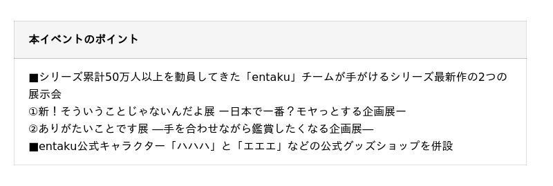 今回は、株式会社ENTAKU produceが昨年春に開催しSNSでも16投稿連続の万バズを記録した『そういうことじゃないんだよ展』と、日常生活の中に潜む「たすかる…」「ありがたい…」と感じる瞬間にフォーカスした新企画展 『ありがたいことです展』 の東京・名古屋・大阪・神戸の4都市開催の大好評をうけ、東京会場の移転・延長として、東京ミッドタウン日比谷にて開催いたします。