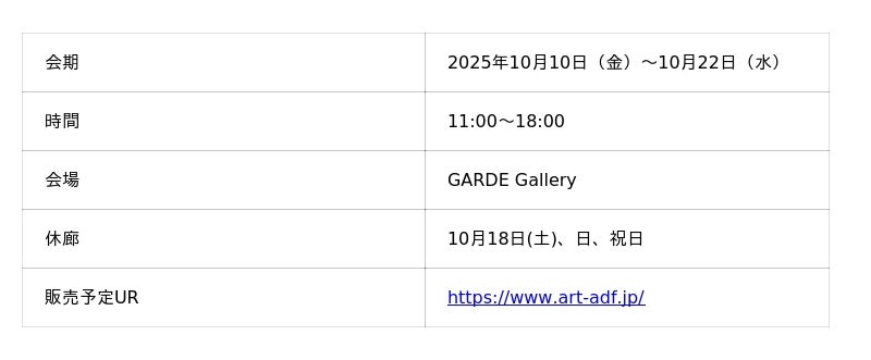 ADF(NPO青山デザインフォーラム)は、「ADFアートギャラリープロジェクト」の第36回目のプロジェクトとして、犬丸暁による個展「光たちの庭」を2025年10月10日(金)から10月22日(水)まで、表参道のGARDE Galleryで開催いたします。