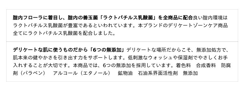 ラクトバチルス乳酸菌を腟内に直接届ける、フェムゾーンのスペシャルケア。乳酸やヒアルロン酸も配合し、デリケートゾーンのpHに合わせた弱酸性(pH3.4~4.4)で、快適な腟内フローラへ導きます。