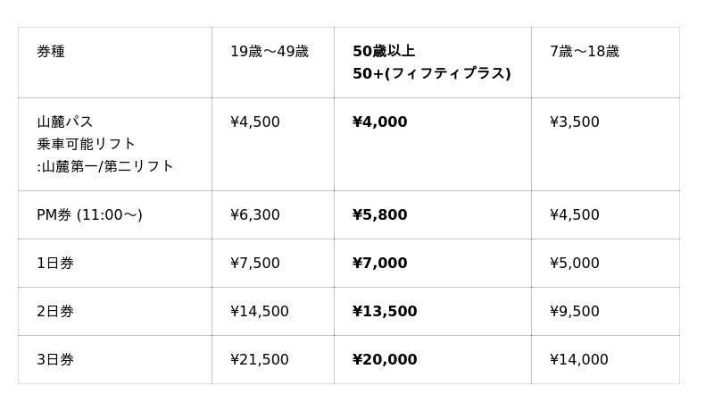 50歳以上限定!新リフト券「50+(フィフティプラス)」販売開始のお知らせ