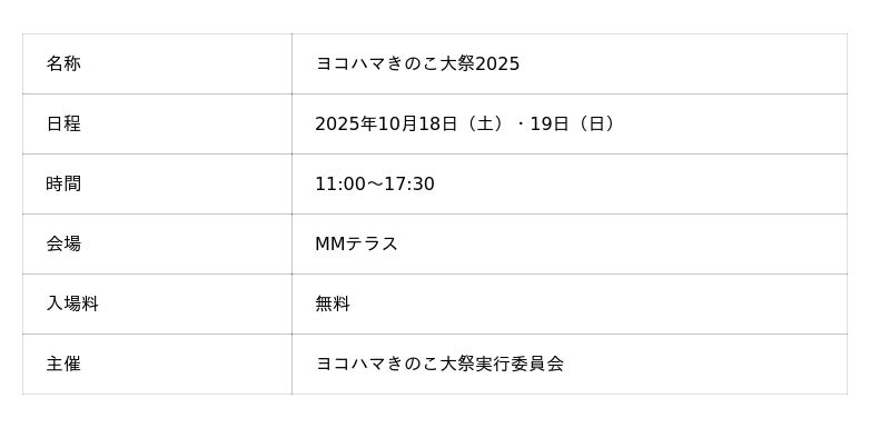 見て・食べて・楽しむ!きのこの祭典『ヨコハマきのこ大祭2025』開催― 10月18日(土)・19日(日) 横浜みなとみらい MMテラス ―