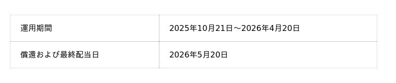 2025年10月9日(木)より一般募集を開始した以下ファンドにつきまして、おかげさまで募集総額全額のお申込をいただき、募集を終了したことをお知らせいたします。