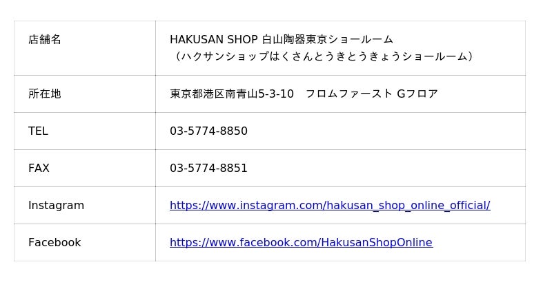 HAKUSAN SHOP 白山陶器東京ショールーム
