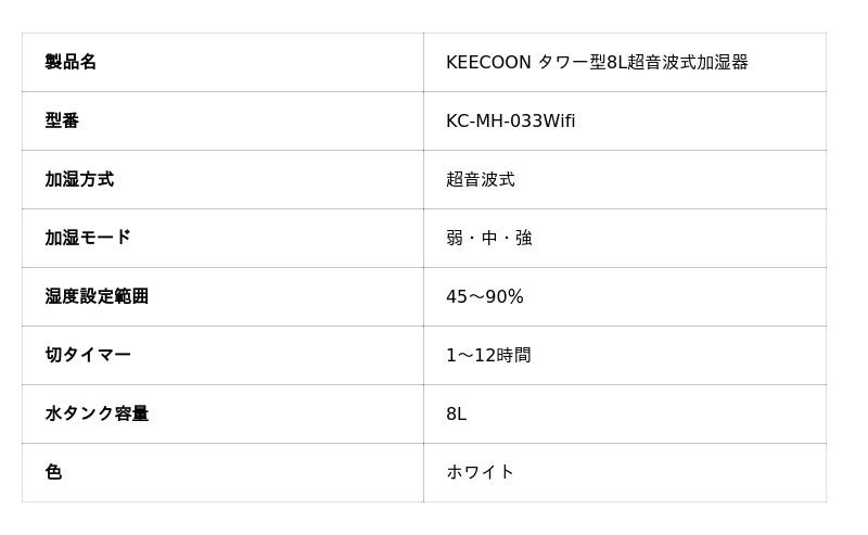 KEECOON タワー型8L超音波式加湿器(KC-MH-033Wifi)は好評につき11月に再販決定!