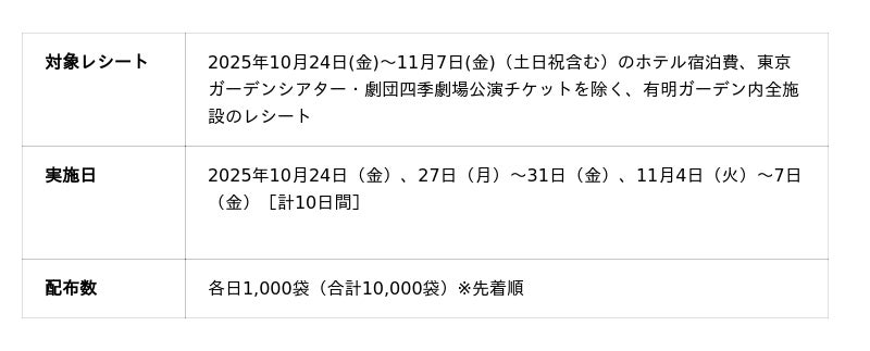 【1】有明ガーデンでのお買上げ6,000円(税込)以上で『カルローズ米2kg』をプレゼント期間中、有明ガーデン内で6,000円(税込・合算可)以上お買い上げのレシートをご提示いただくと、有明ガーデン5周年を記念したオリジナルパッケージの『カルローズ米2kg』をプレゼントいたします。