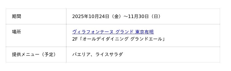 そして今年は、世界で高く評価される『カルローズ米』を、試食コーナー、飲食店メニュー、買い上げプレゼントキャンペーンを通じてご紹介します。商業施設として「食文化の今とこれからを体感できる場」を提供し、日本米との味わいや使い方の違いを体験していただくことで、日々の暮らしに新たな発見と選択肢を広げることを目指します。
