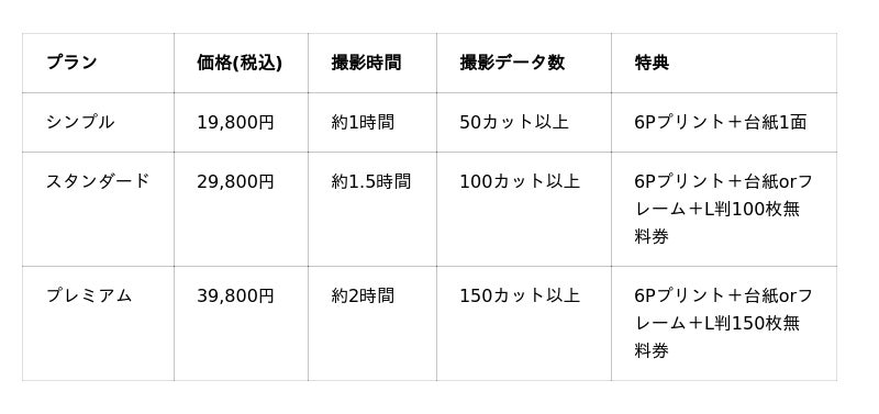 提供する撮影プランの概要