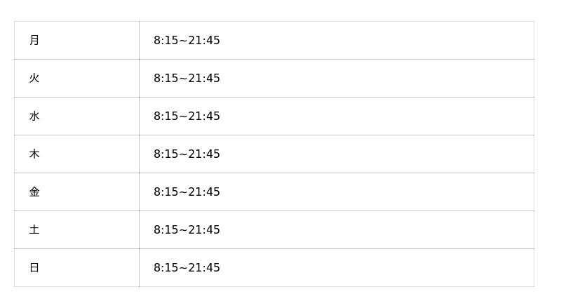 ※オープン時の営業時間となり、変更となっている可能性がございます。