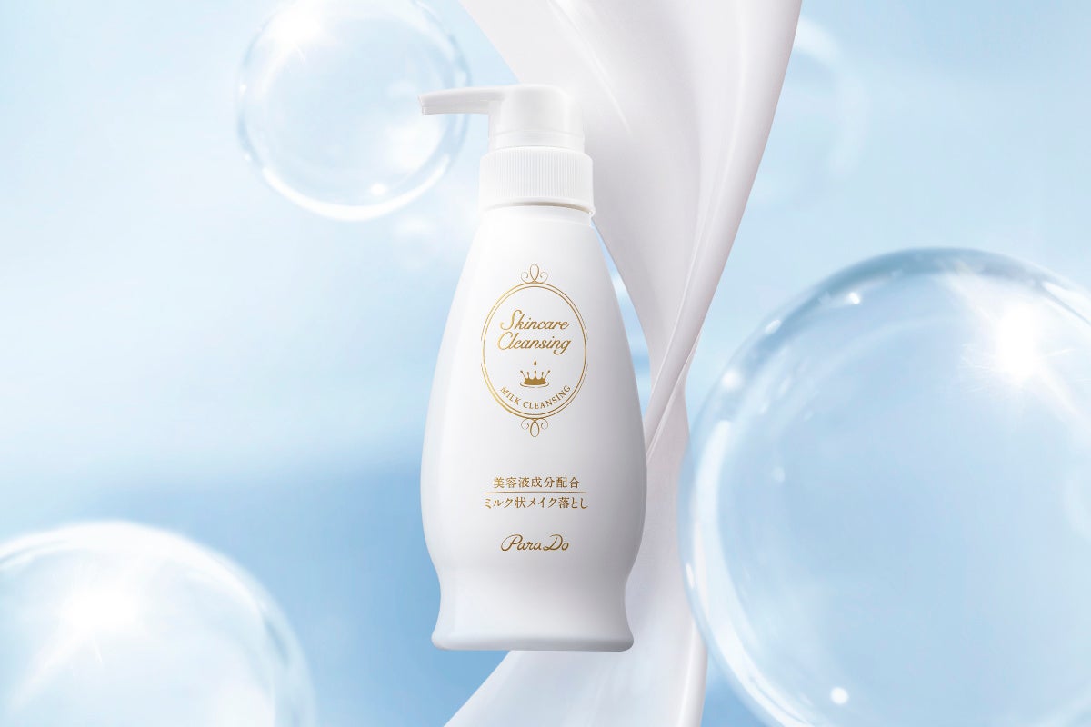 「パラドゥ スキンケアクレンジング」は、アイメイクまで落ちる高いクレンジング力と保湿力を兼ね備えた、美容液成分(※3) 90%配合のミルク状メイク落とし。
