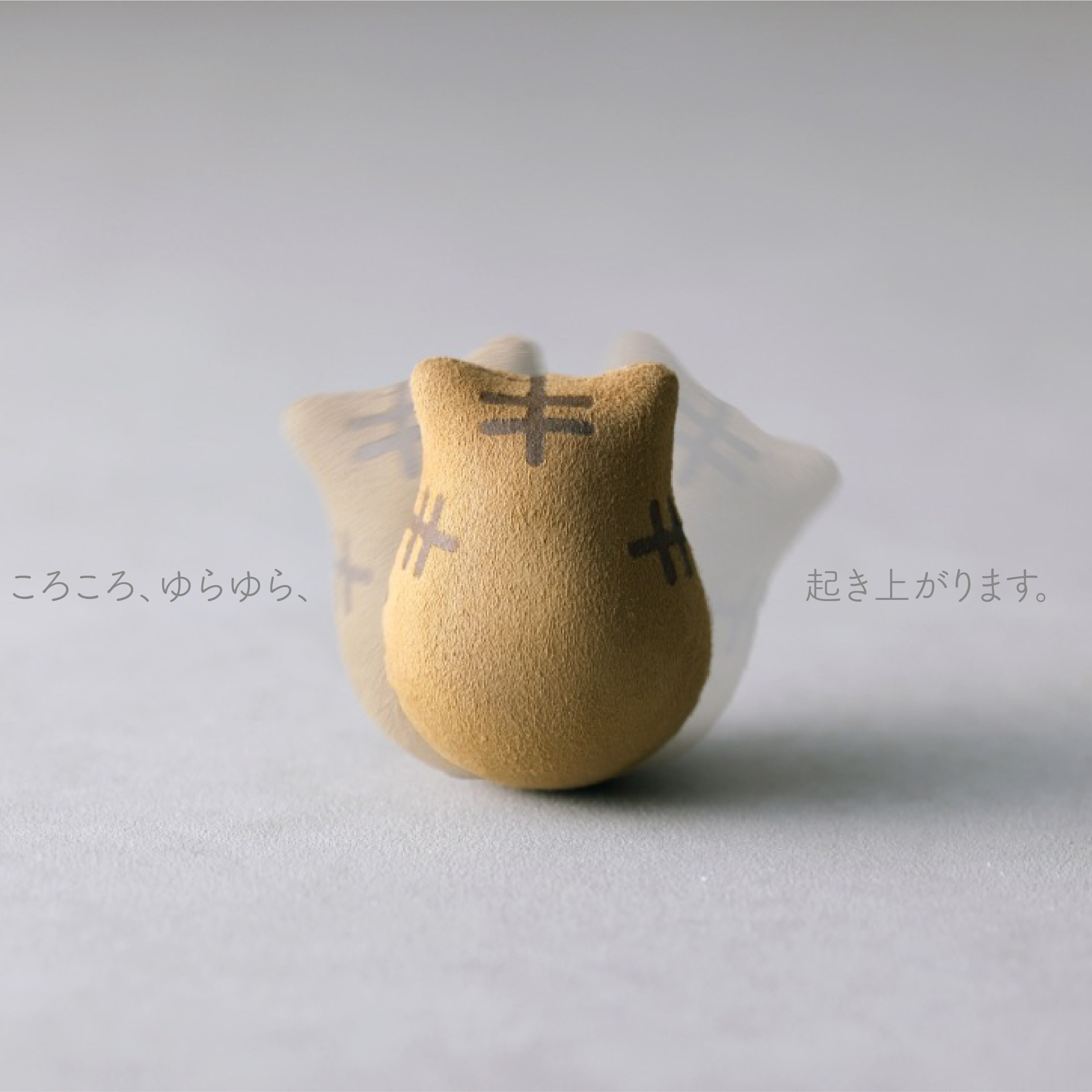 デフォルメされた猫の起き上がり小法師は、猫種のオーダーや名前の刻印も可能。ゆらゆら揺れる姿に癒されます。