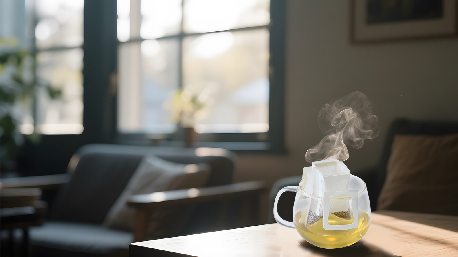 かつお節の入ったドリップバッグをマグカップに装着し、お湯を注ぐだけで完成します。3分でおいしい出汁を飲むことができます。