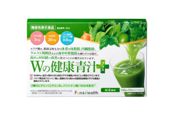 「Wの健康青汁プラス」は、3つの機能性関与成分で体重・体脂肪・高めの血圧・高めの空腹時血糖値を丸ごとサポートする機能性表示食品です。エラグ酸・GABAに加え、新たにバナバ葉由来コロソリン酸を配合。体重※2・体脂肪※2・高めの血圧のケアはそのままに、高めの空腹時血糖値までケアできるよう進化しました。また、健康維持に不可欠な2種のビタミン1日分※3を新配合し、栄養価のバランスをアップ。さらに飲みやすさにもこだわり、小松菜・ほうれん草を追加。自然な甘みと優しい野菜の風味で、スッキリコクのある味わいを楽しんでいただけます。健康診断の結果が気になる方、野菜不足を対策したい方、お腹周りが気になる方におすすめの商品です。