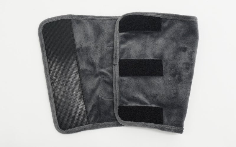 固めの面ファスナー採用で、装着してもクシャっとなりにくく、足首の広範囲をしっかりと温めます。