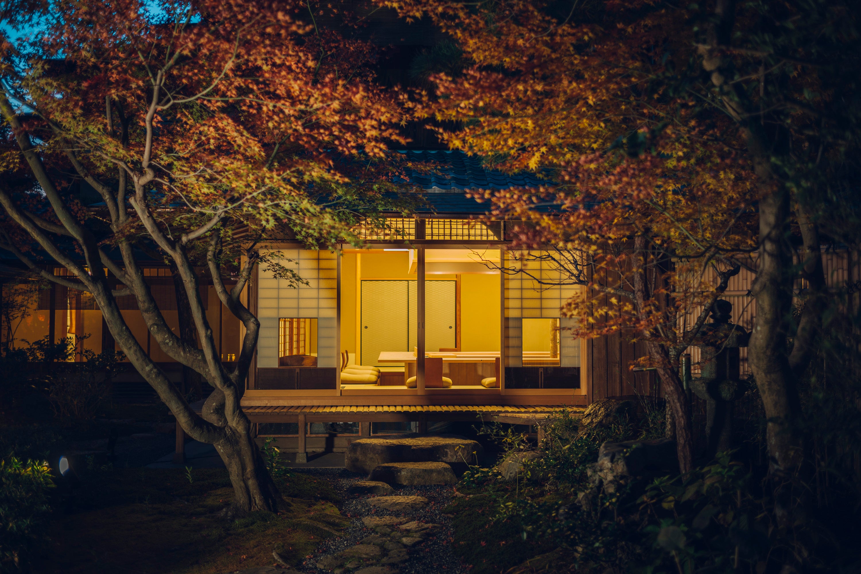 部屋の窓からのぞく店の庭にも紅葉の彩りが見られ、食事と共に京都の秋が織りなす風情を感じながらお過ごしいただけます。