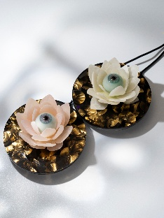 花びらは廃棄マネキンを使用し、身体曲線の部分を切り出して制作しました。中心のガラス製眼球は、四半世紀前のマネキンの義眼として使用されていた貴重なデッドストック品です。中心に置いた先人たちの技術遺産を、花びらで大事に包み込むように真心を込めて制作しました。マネキン会社の歴史と技術をハイブリッドさせた作品です。